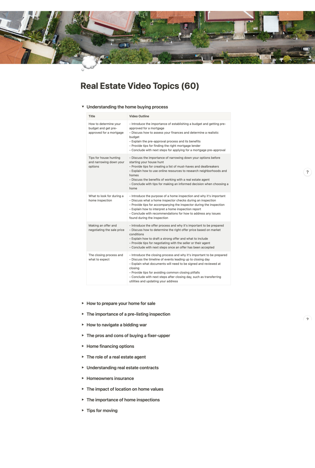 60 Real Estate Video Topics